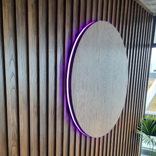 Installed new LED RGB fittings for the Pink Lady display in Christchurch, completing the signage lighting setup with a clean and professional finish.